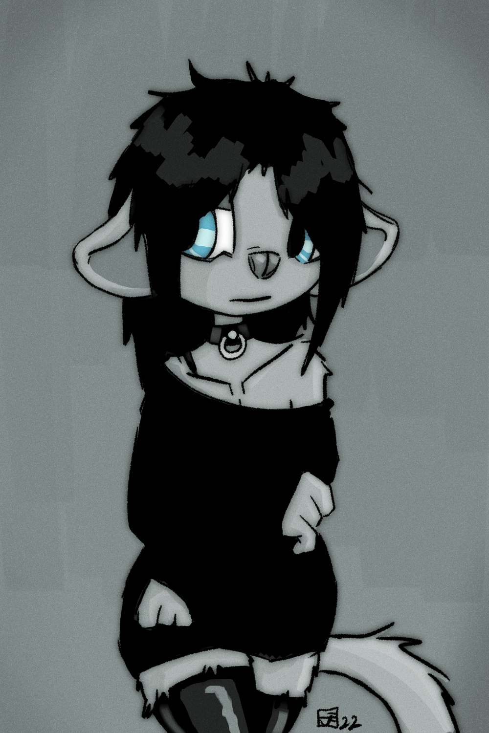 Ilustración para San Valentín, mostrando un gato furry sosteniendo una caja de bombones y una fusta